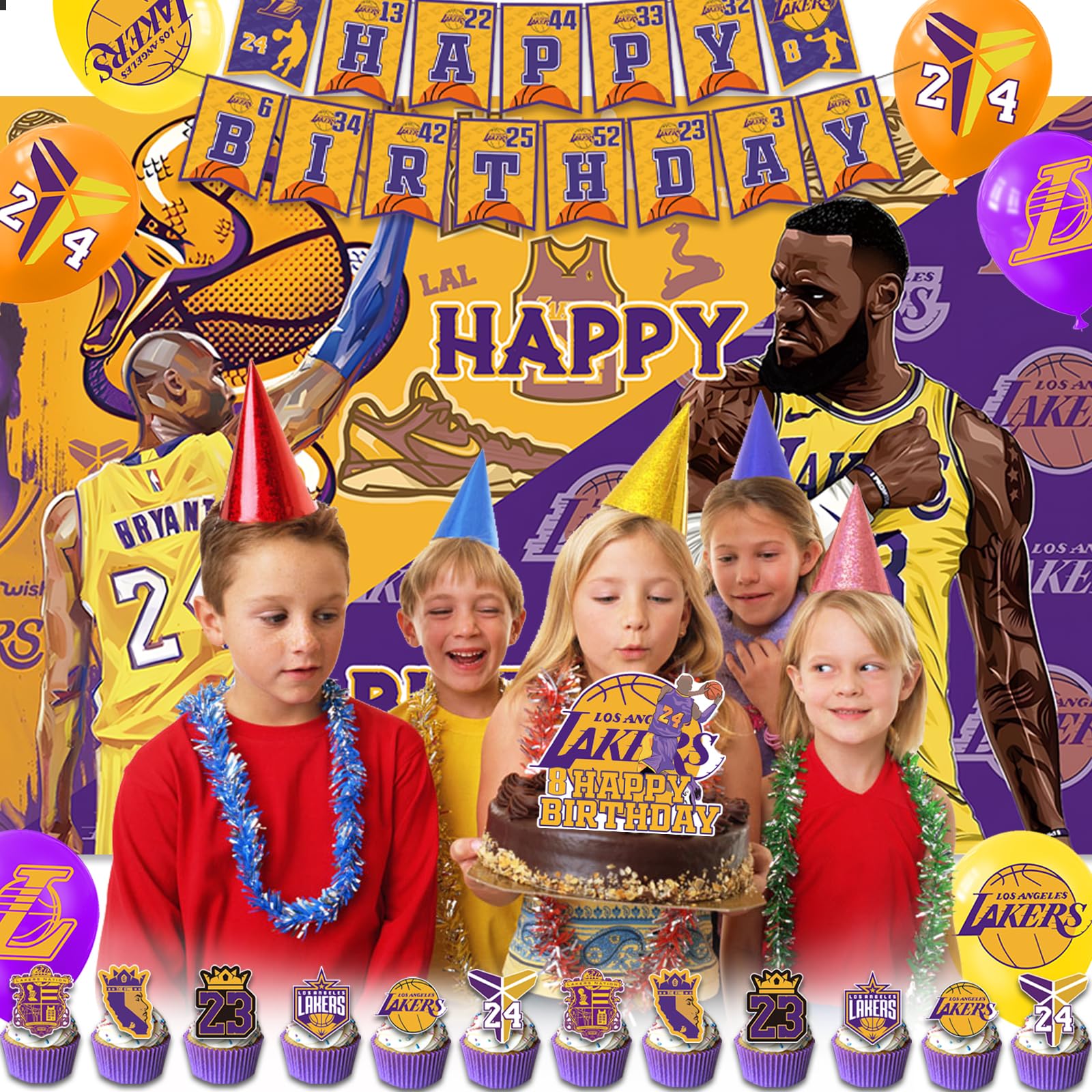 Amazon Com Lakers 24 Birthday Party Supplies For Men Boys Adults Kobe Bryant And Lebron James Basketball Game Theme Party Decorations Including Plates And Cups Tablecloth Backdrop Cake Toppers Backdrop Toys